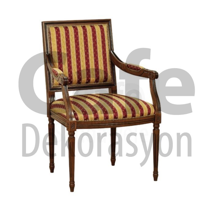 Çizgili Kumaş Döşemeli Torna Ayaklı Klasik Kollu Sandalye