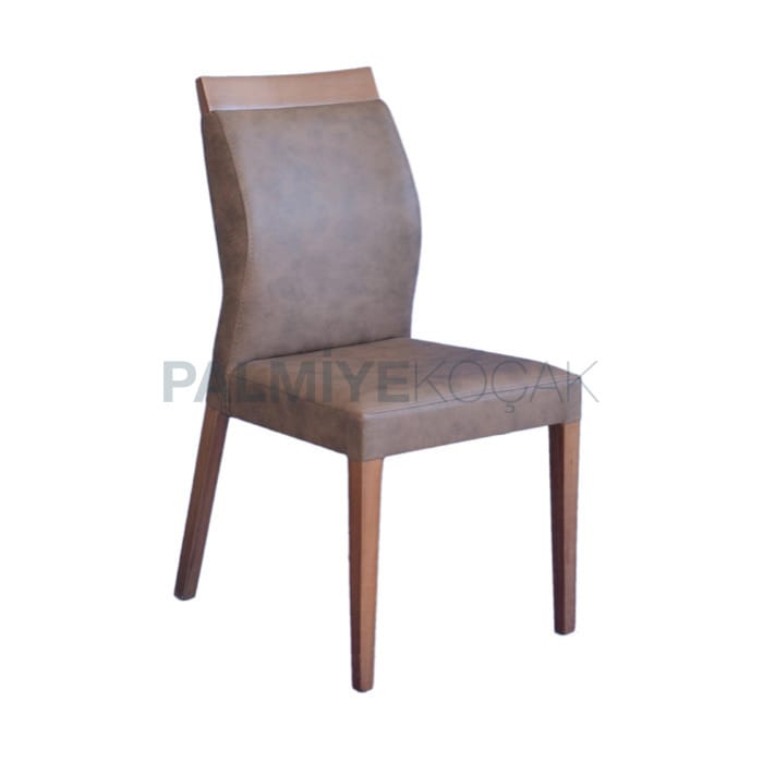 / Kahverengi Deri Döşemeli Modern Cafe Sandalyesi